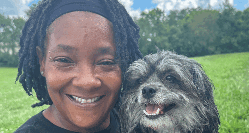 There was another young lady at the shelter, and we became really close. She asked if I’d be willing to keep her dog, Roscoe. He’s been with me ever since.